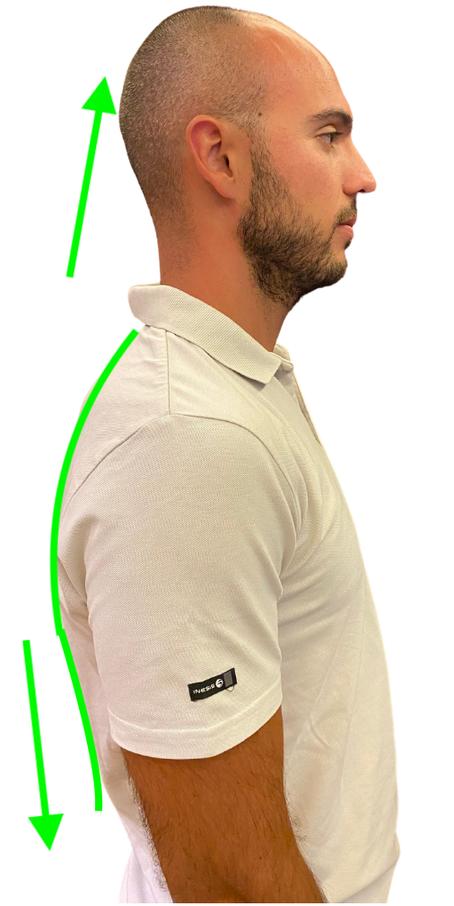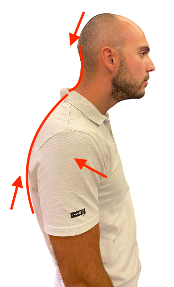 Immagina che lo stringere i denti attivi i muscoli della mandibola, i quali attivano a loro volta i muscoli della cervicale anteriore, il risultato è uno spostamento del cranio in anteriorità e un aumento di curva cervicale, te lo spiego meglio con questo esempio in foto!