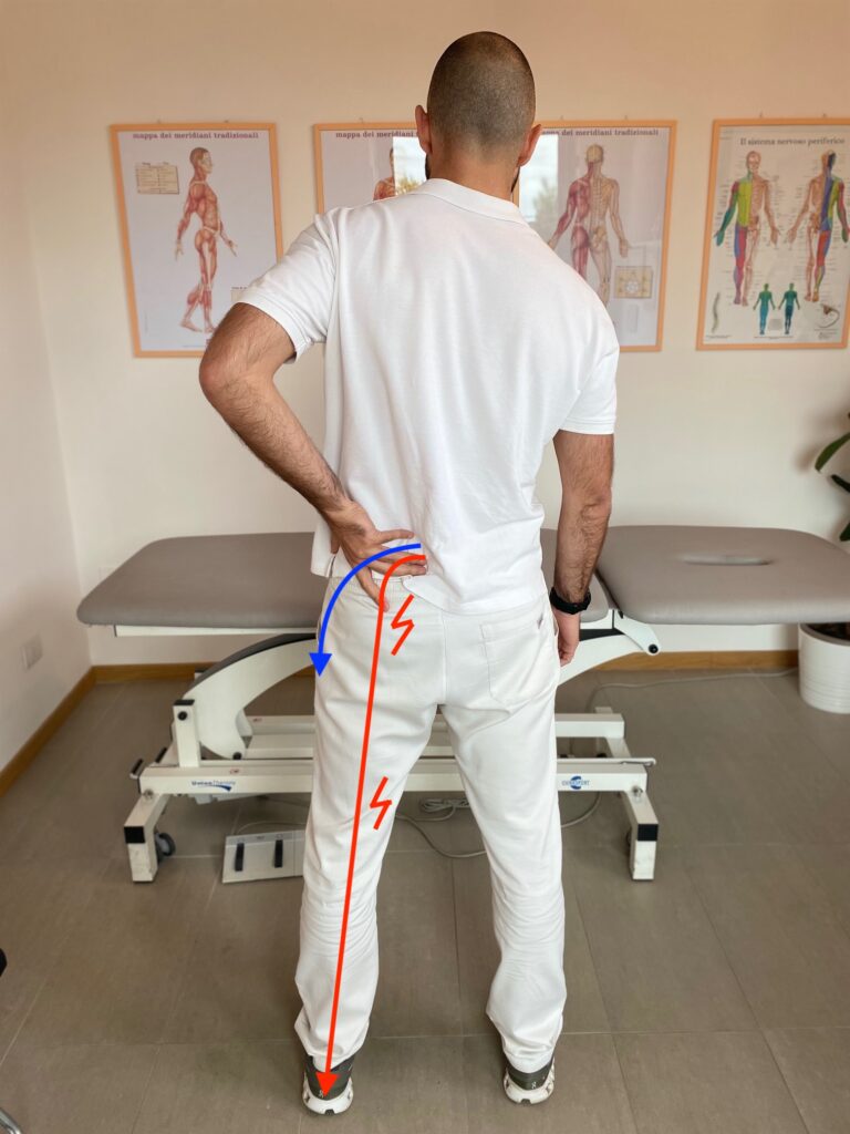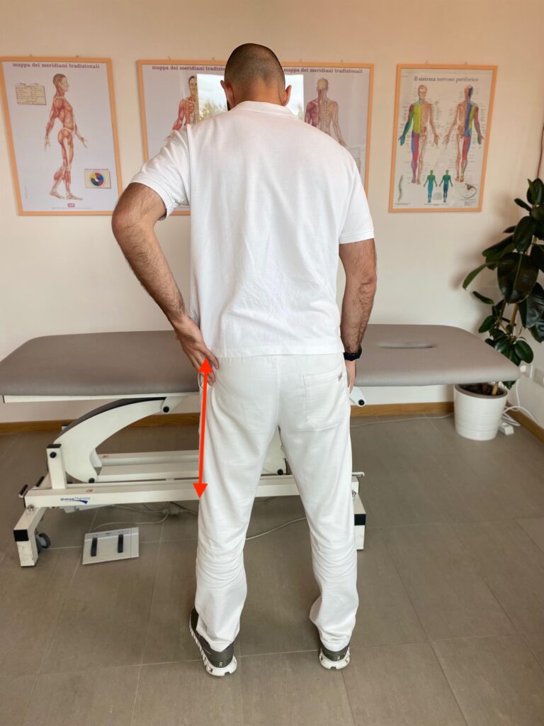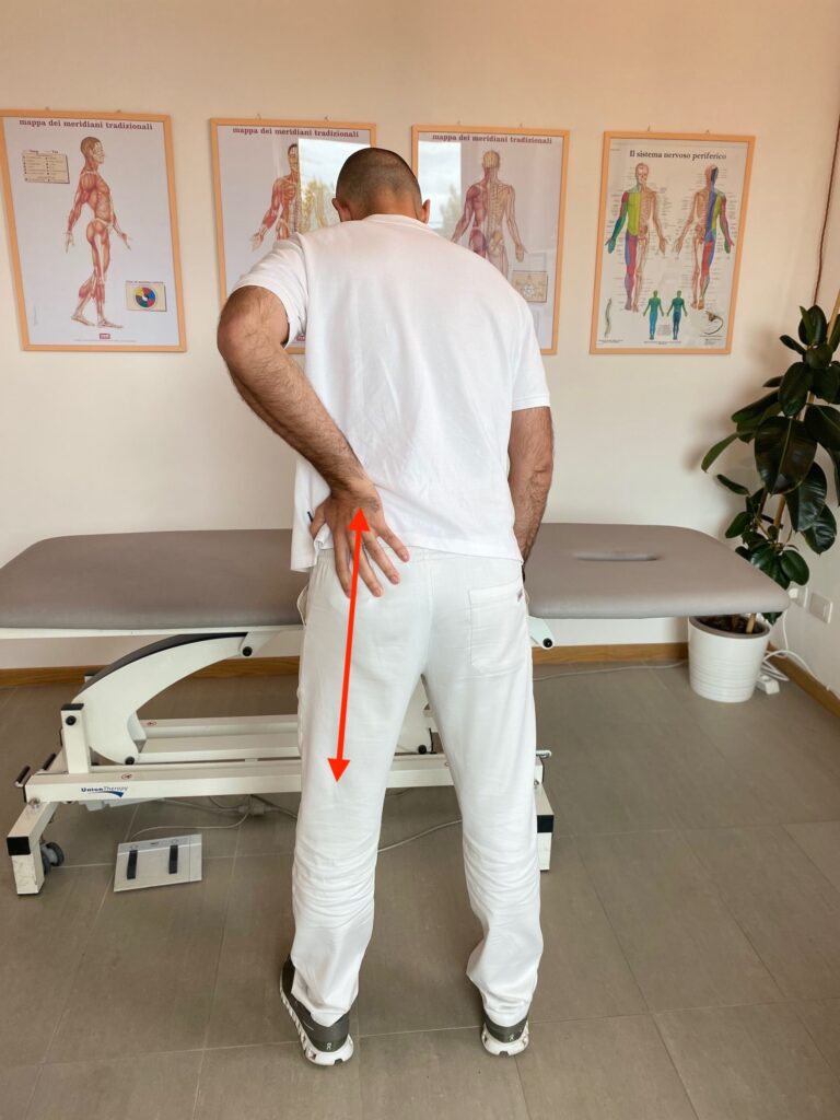 1 sensazione di linea che “tira” o traziona in verticale nella zona glutea e lombare.